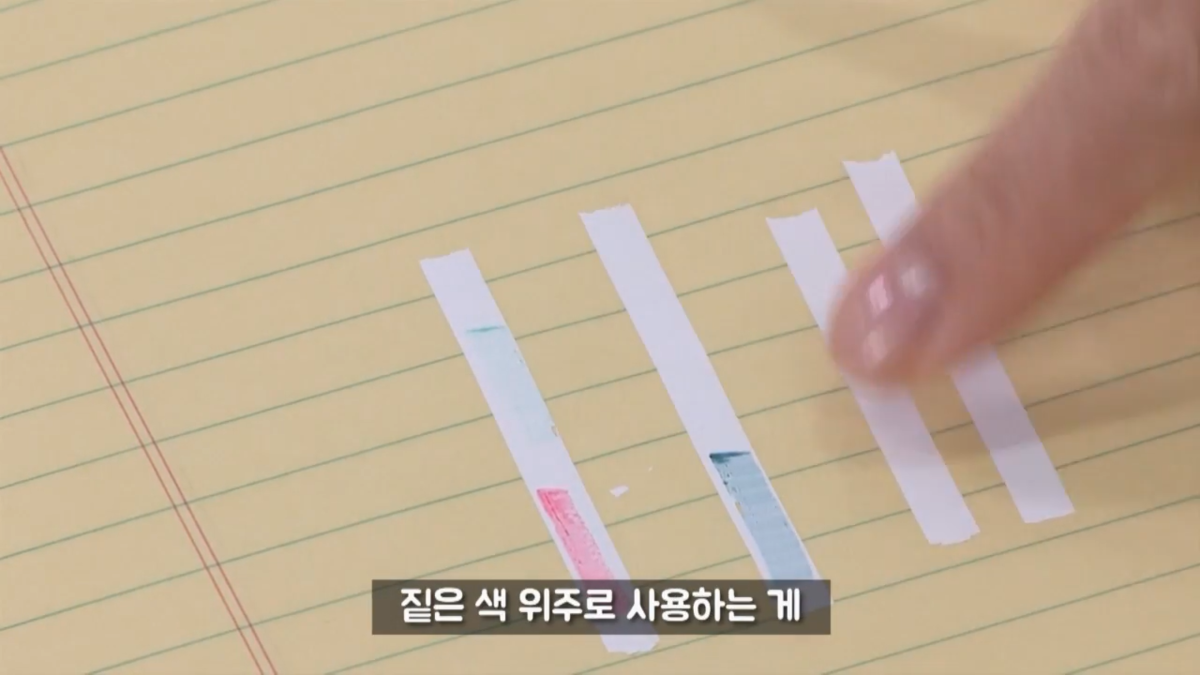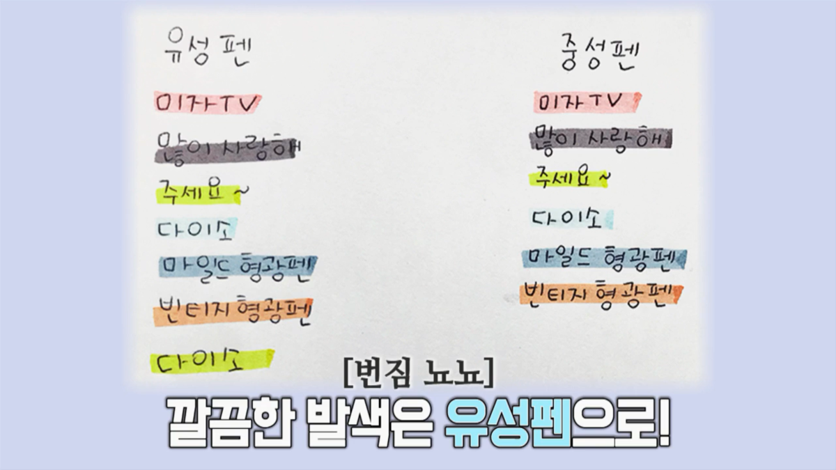 유성펜 or 중성펜 위에 다이소 형광펜을 사용하면